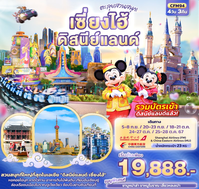 | วันที่ 2 | สนุกเต็มอิ่มกับเซี่ยงไฮ้ ดิสนีย์แลนด์เต็มวัน!! |