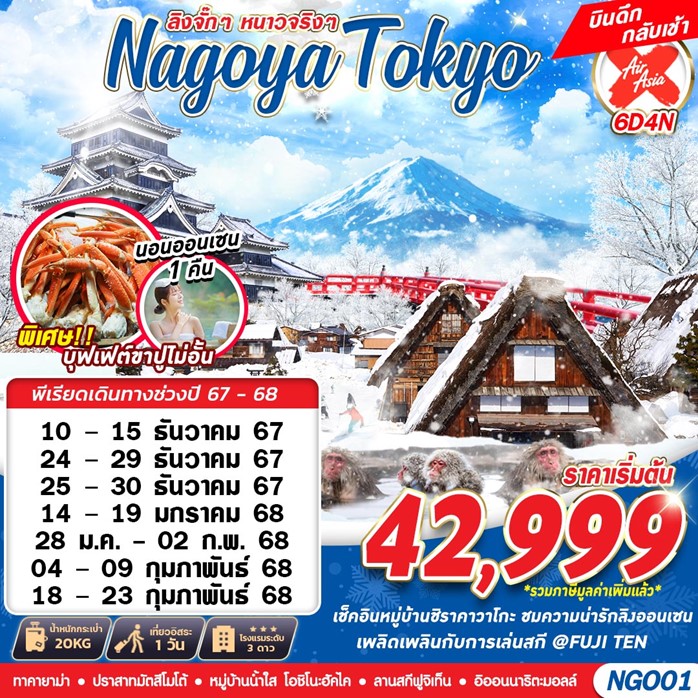| วันที่ 4 | ลานสกีฟูจิเท็น – พิพิธภัณฑ์แผ่นดินไหว – หมู่บ้านน้ำใส โอชิโนะฮัคไค – อิออน นาริตะ มอลล์ |