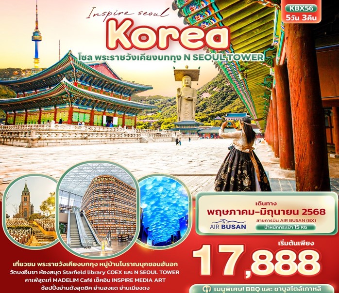 19.00 น. พร้อมกัน ณ ท่าอากาศยานนานาชาติสุวรรณภูมิ อาคารผู้โดยสารระหว่างประเทศขาออกชั้น 4 เคาน์เตอร์ โดยสายการบิน AIR BUSAN (BX) โดยมีเจ้าหน้าที่บริษัทฯ คอยต้อนรับและอำนวยความสะดวกด้านเอกสารติดแท็กกระเป๋า