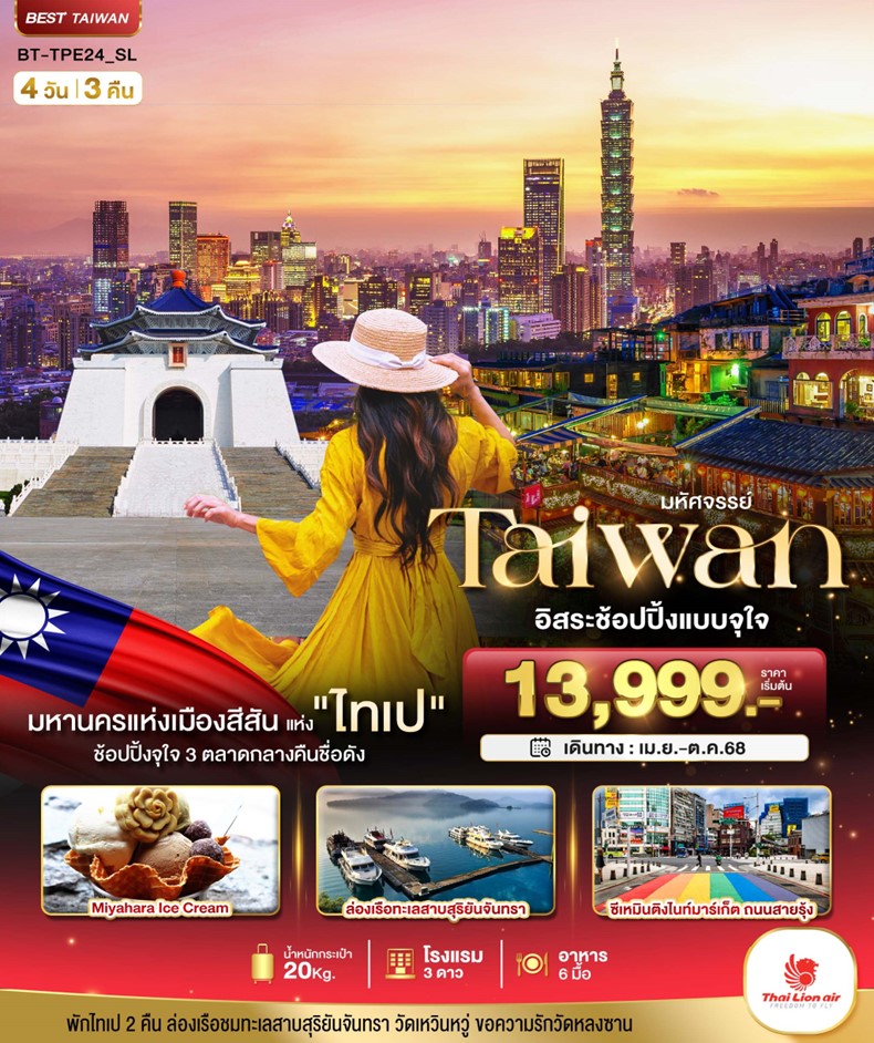 ทัวร์ไต้หวัน มหัศจรรย์ ไต้หวัน | 4D3N