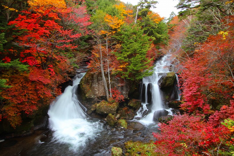 10.น้ำตก Ryuzu no taki 竜頭ノ滝 น้ำตกแห่งนี้เป็นหนึ่งในจุดชมใบไม้เปลี่ยนสีที่มีชื่อเสียงมากที่สุดของเมืองนิกโก้ ความหมายของคำว่า Ryuzu คือ หัวมังกร ซึ่งได้มาจากรูปลักษณ์ของน้ำตกที่คล้ายกับหัวของมังกรนั่นเอง ตั้งอยู่บนแม่น้ำ Yukawa ก่อนที่ไหลไปบรรจบกับทะเลสาบ Chuzenji โดยช่วงที่จะชมใบไม้เปลี่ยนสีได้สวยที่สุดคือช่วงต้นเดือนตุลาคม สามารถชมจากจุดชมวิวได้โดยไม่เสียค่าใช้จ่าย และเดินต่อไปตามทางแม่น้ำเพื่อชมทิวทัศน์ที่สวยงามได้ด้วยเช่นกัน