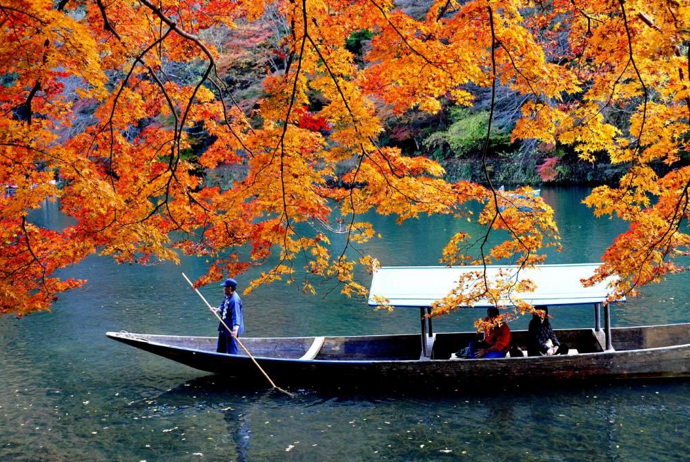 2.ล่องเรือ Kawakudari ที่ Arashiyama สัมผัสประสบการ์ณชื่นชมธรรมชาติไปตามกระแสน้ำที่ไหลนิ่งในบางจุดและตื่นเต้นกับจุดที่น้ำไหลเชี่ยวช่วงเวลาที่สวยที่สุดคือ ปลายเดือนพฤศจิกายน ถึงต้นเดือนธันวาคม   วิธีการเดินทางไปยังหุบเขา Hozu จากสถานี Kyoto ขึ้นรถไฟ JR สาย Sagano ไปลงที่สถานี Kameoka ใช้เวลา 20 นาที และเดินต่ออีก 8 นาทีไปยังจุดขึ้นเรือ