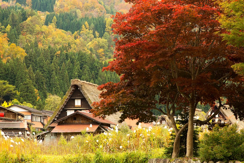 5.หมู่บ้านมรดกโลก Shirakawago และ หมู่บ้าน Gokayama ที่ตั้งอยู่ในภูเขาที่ครอบคลุมพื้นที่ของจังหวัด Gifu และ Toyama ในช่วงฤดูใบไม้ร่วงจะได้สัมผัสบรรยากาศของทิวเขาที่สลับสีสันสวยงาม และยังมีใบไม้แดงให้ได้ชมอยู่ในบริเวณหมู่บ้านอีกด้วย