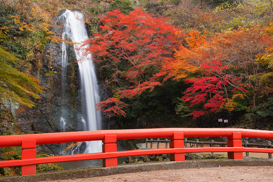4.สวน Minō Koen 箕面公園 ตั้งอยู่ในหุบเขาศักดิ์สิทธิ์ มีวัด Ryuanji และ น้ำตก Minō อันแสนสง่างามตั้งอยู่ภายในสวน เรียกได้ว่าเป็นจุดชมใบไม้เปลี่ยนสีที่สวยงามที่สุดของจังหวัดโอซาก้าเลยทีเดียว ช่วงเวลาที่ดีที่สุด กลาง-ปลายเดือนพ.ย. ไม่เสียค่าเข้าชม