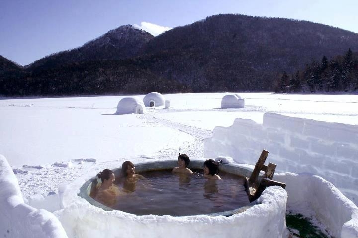 นอกจากนี้ยังมีออนเซ็นแบบกลางแจ้งท่ามกลางหิมะ ซึ่งการได้มาแช่น้ำร้อนท่ามกลางความหนาวเย็นนั้นขอบอกว่ามันสบายตัวมากๆ หลังจากนั้นก็ไปนอนหลับสบายบนเตียงน้ำแข็งในอิกลู