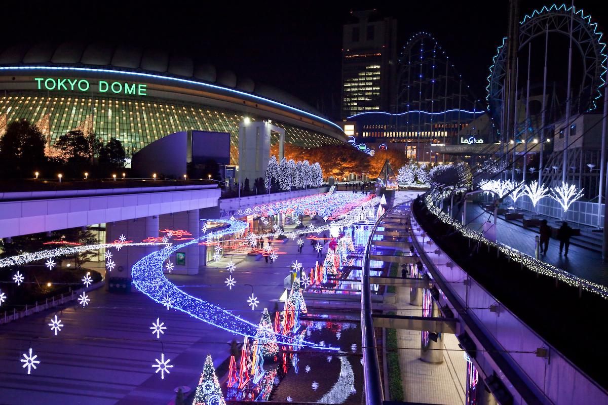 ที่โตเกียวโดมสถานที่จัดอีเว้นท์ทรงโค้งยอดนิยมของโตเกียว ในช่วงฤดูหนาวจะประดับประดาไฟอย่างสวยงามเพื่อเป็นแหล่งชมไฟฤดูหนาวสำหรับ ประชาชน จุดเด่นของที่นี่คือ กาแล็กซีโดม โดมประดับไฟขนาดใหญ่ที่จัดที่นั่งไว้ภายในให้เราเข้าไปนั่งชมไฟคล้ายอยู่ภาย ใต้แสงของกาแล็กซีทางช้างเผือกที่ล้อมรอบตัวเลยทีเดียว นอกจากนี้ยังมีทางเดินประดับไฟขนาดยาวให้เดินเล่นอีกด้วย