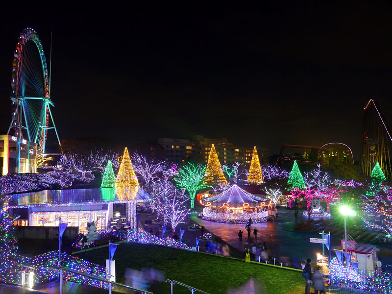 ในเวลากลางวันสวนสนุกโยะมิอุริแลนด์อาจเป็นเพียงสวนสนุกธรรมดา แต่ในช่วงปลายปีตอนกลางคืนที่นี่จะถูกตกแต่งจนสวยงามราวกับอัญมณี ไฟแต่ละดวงที่นี่ถูกประดับจนราวกับกลายเป็นดินแดนแฟนตาซีในฝัน เมื่อมองจากมุมสูงบนชิงช้าสวรรค์รับรองว่าเป็นสถานที่เดทที่โรแมนติกไม่แพ้ ใครเลยครับ