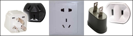 ตัวอย่างปลั๊กไฟและตัวแปลงที่ใช้กับปลั๊กไฟในจีน