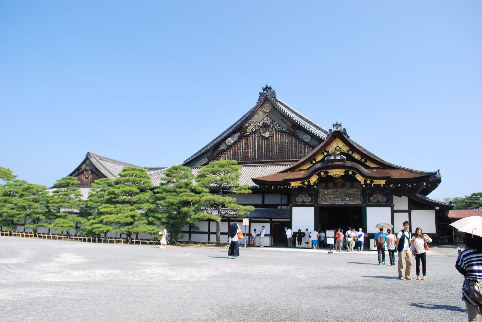 เป็นปราสาทสร้างขึ้นจากไม้ทั้งหมดซึ่งแตกต่างกับปราสาทอื่นๆ ในประเทศญี่ปุ่นที่มีฐานเป็นก้อนหินภายในปราสาทนิโจประกอบด้วยป้อมปราการที่เรียงตัวเป็นวงแหวนสองชั้น และมีสวนสไตล์ญี่ปุ่นอยู่หลายแห่ง ก่อสร้างขึ้นใน ค.ศ.1569 ภายในท้องพระโรงบริเวณฝาผนังถูกปิดทองด้วยฝีมืออันวิจิตร สะท้อนให้เห็นถึงอำนาจของโชกุนในสมัยเอโดะ ส่วนระเบียงไม้ที่เชื่อมกับตำหนักนิโนะมารุนั้น มีเทคนิคในการสร้างที่ไม่ใช้ตะปูในการยึดพื้นผิว เมื่อมีคนล่วงล้ำเข้ามาจะทำให้พื้นไม้ส่งเสียงดังเหมือนเสียงนกไนติ้งเกิล ส่วนเขตปราสาทด้านทิศใต้จะอยู่ติดกับ “นิโจจินยะ” ซึ่งเดิมเป็นบ้านของคหบดีผู้มั่งคั่งแต่ต่อมาได้เปลี่ยนมาเป็นที่พักแรกสำหรับไดเมียวหัวเมืองที่เข้าเยี่ยมคารวะโชกุน ภายในเต็มไปด้วยประตูกล ทางลับ และห้องลับมากมาย