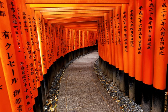 เป็นศาลเจ้าที่ชาวนาสร้างขึ้นในศตวรรษที่ 9 เพื่อบูชาจิ้งจอกที่เป็นทูตส่งสารของเทพเจ้าแห่งการเก็บเกี่ยว เทพจิ้งจอก ที่ชาวญี่ปุ่นชื่อว่าเป็น ทูตสวรรค์ ผู้คอยนำข่าวสารจากสรวงสวรรค์ลงมายังโลกมนุษย์ ศาลโทริอิ มีลักษณะเป็นซุ้มประตูสีแดงซึ่งถือเป็นสัญลักษณ์ของศาลเจ้า ที่มีมากกว่าร้อยต้นทอดตัวยาวตามเส้นทางของไหล่เขาลดหลั่นกันบนเส้นทางยาวถึง 4 กิโลเมตร