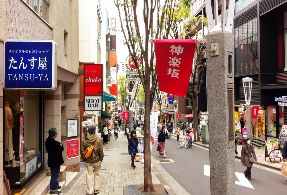 ถนนสายเล็กๆในเขต Shinjuku เสน่ห์ของย่านนี้คือร้านค้าที่ตั้งอยู่บนเนิน สูงๆ ต่ำๆ สลับกันไป (คล้ายภูเขา) กับบ้านเรือนที่ยังเป็นแบบโบราณ รวมทั้งมีร้านอาหารอร่อยๆหลายร้านซ่อนตัว อยู่ตามตรอกซอกซอยต่างๆ เป็นแหล่งช้อปปิ้งที่มีบรรยากาศสบายๆไม่เร่งรีบและนักท่องเที่ยวยังได้เพลิดเพลินไปกับความงดงามของบ้านเรือนในยุคเก่าๆอีกด้วย