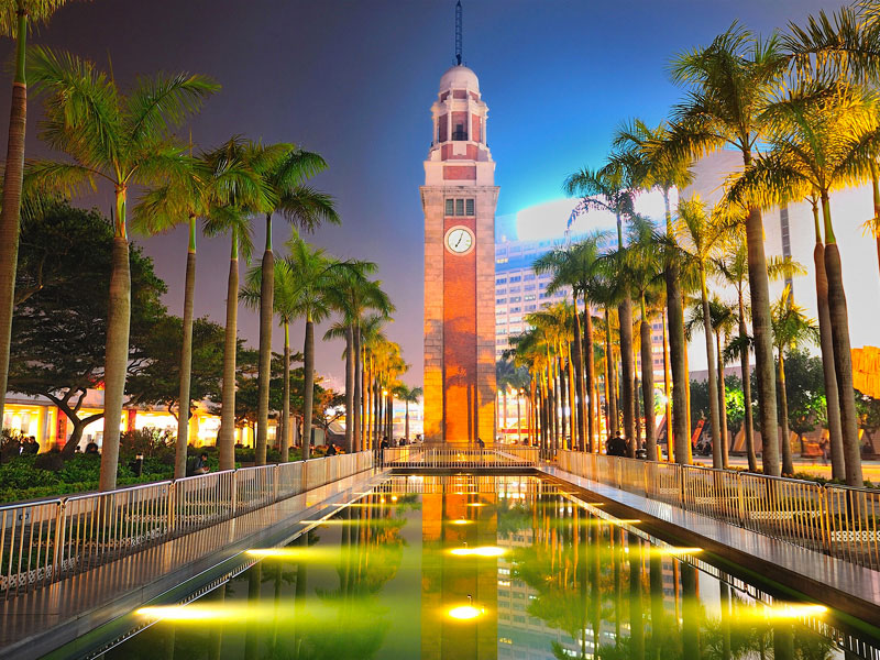 หอนาฬิกาเก่าสูง 44 เมตร สร้างขึ้นในปี 1915 โดยเป็นส่วนหนึ่งของสถานีรถไฟเกาลูน แคนตัน สถานีซึ่งเคยคับคั่งไปด้วยผู้คนแห่งนี้ได้เลิกให้บริการไปนานแล้ว แต่หอนาฬิกาที่สร้างจากอิฐสีแดงและหินแกรนิตยังถูกเก็บรักษาไว้ และปัจจุบันได้รับการประกาศเป็นอนุสรณ์สถาน ที่ย้ำเตือนความทรงจำอันสง่างามของยุคเครื่องจักรไอน้ำ และยังเป็นสัญลักษณ์ที่น่าจดจำสำหรับผู้อพยพชาวจีนนับล้านคนซึ่งเดินทางผ่านสถานีแห่งนี้เพื่อไปเริ่มต้นชีวิตใหม่ ไม่เพียงแต่ในฮ่องกง แต่ยังรวมถึงส่วนอื่นๆ ของโลกผ่านท่าเรือฮ่องกงด้วย