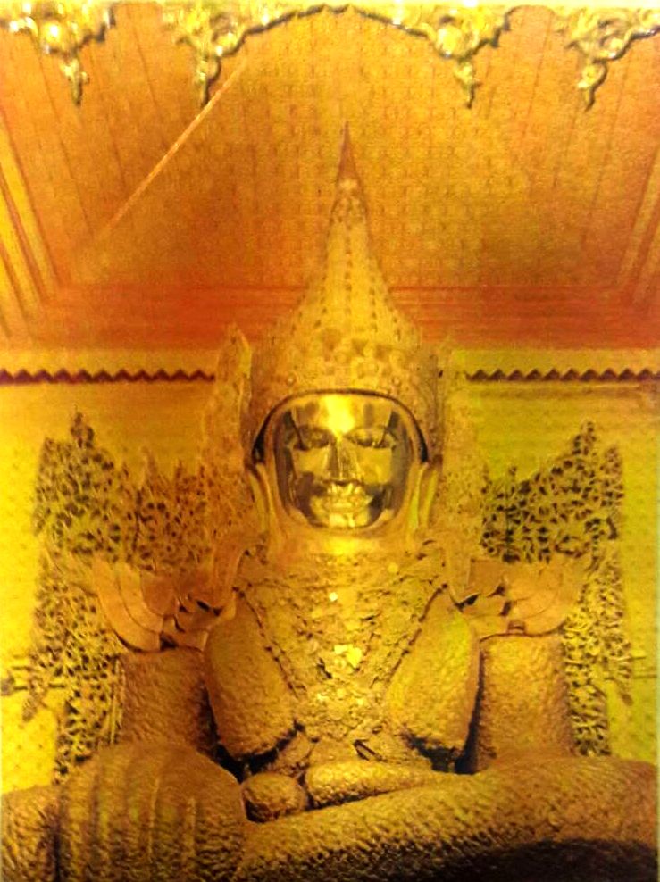 ถือเป็นต้นแบบพระพุทธรูปทองคำขนาดใหญ่ทรงเครื่องกษัตริย์ที่ได้รับการขนานนามว่า “พระพุทธรูปทองคำเนื้อนิ่ม” ที่พระเจ้ากรุงยะไข่ทรงหล่อขึ้นที่เมืองธรรมวดี เมื่อปี พ.ศ. 689 สูง 12 ฟุต 7 นิ้ว หุ้มด้วยทองคำเปลวหนา 2 นิ้ว ทรงเครื่องประดับทองปางมารวิชัย หน้าตักกว้าง 9 ฟุต ในปี พ.ศ. 2327 พระเจ้าปดุงได้สร้างวัดมหามุนี หรือวัดยะไข่ (วัดอาระกัน หรือวัดพยาจี) เพื่อประดิษฐานพระมหามัยมุนี และในปี พ.ศ.2422 สมัยพระเจ้า สีปอ ก่อน จะเสียเมืองพม่าให้อังกฤษได้เกิดไฟไหม้วัดทองคำ จึงทำให้ทองคำเปลวที่ปิดพระละลายเก็บเนื้อทองได้นํ้าหนักถึง 700 บาท ต่อมาในปี พ.ศ.2426 ชาวพม่าได้เรี่ยไรเงินเพื่อบูรณะวัดขึ้นใหม่มีขนาดใหญ่กว่าเดิมโดยสายการออกแบบของช่างชาวอิตาลีจึงนับได้ว่าเป็นวัดที่สร้างใหม่ที่สุดแต่ประดิษฐานพระพุทธรูปเก่าแก่ที่สุดในเมืองพม่า